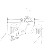 Elefănțelul Vivi stătea pe acoperișul casei sale și vorbea de acolo cu Edi, prietenul său, și el cocoțat pe casă.